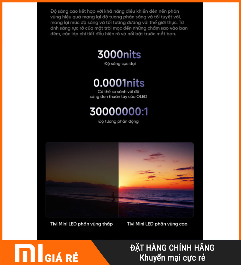 Chiếc TV này sử dụng hàng nghìn đèn nền Mini LED, được chia thành nhiều vùng kiểm soát độc lập, cho khả năng tinh chỉnh ánh sáng chính xác. Nhờ đó:
