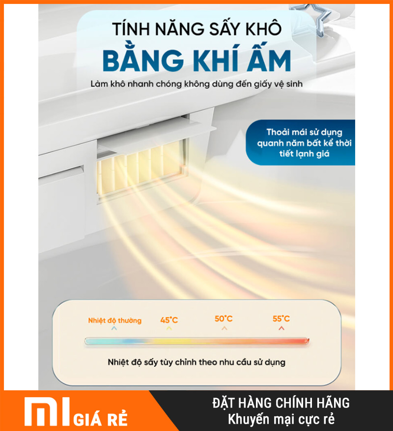 5 mức nhiệt độ tùy chỉnh từ 32°C – 40°C.