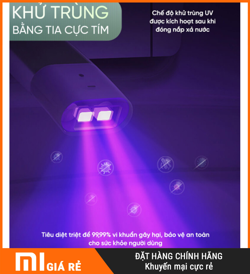 Bề mặt lòng bồn cầu cũng được làm sạch bằng tia UV vào thời điểm định kỳ.