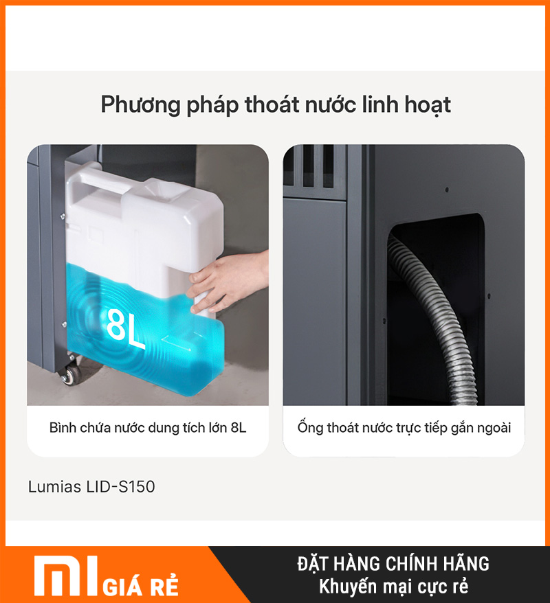 Nếu bạn cần một máy hút ẩm công nghiệp hút mạnh – chạy bền – dễ kiểm soát, dùng cho diện tích 150–230m², thì Lumias LID-S150 là lựa chọn phù hợp với công suất 1740W, máy nén Panasonic, dàn ống đồng, 2 phương án thoát nước, cùng WiFi điều khiển từ xa và cảm biến ẩm chính xác.