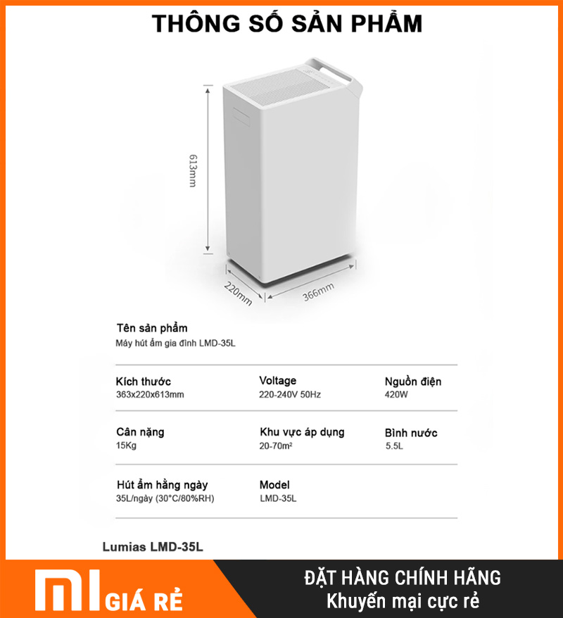 | Tên sản phẩm | Máy hút ẩm gia đình Lumias LMD-35L |