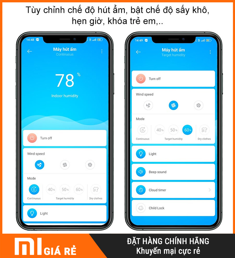 Điều khiển qua App: chủ động bật/tắt từ xa, tùy chỉnh chế độ dễ dàng.