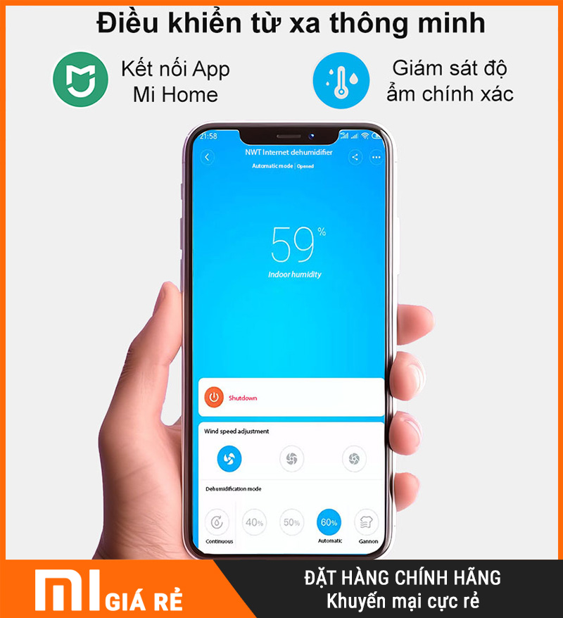 Tự động hóa: Có thể kết hợp với cảm biến hoặc thiết bị thông minh khác để tự động bật khi độ ẩm vượt ngưỡng.