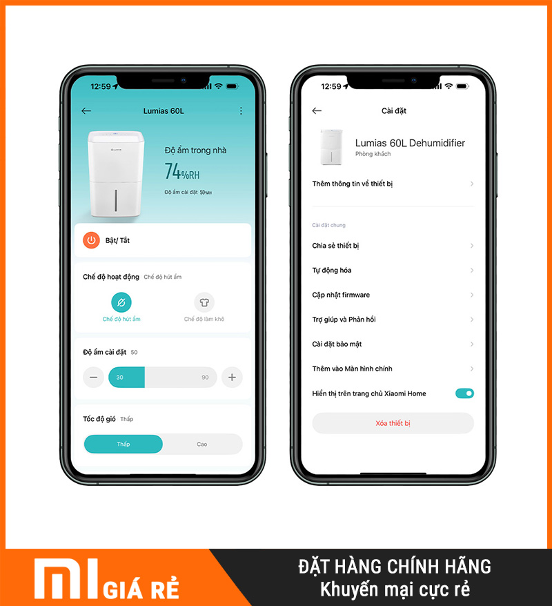 | Ứng dụng điều khiển | MiHome |