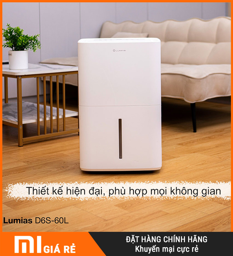 D6S-60L theo đuổi phong cách thiết kế hiện đại, tối giản, nhấn vào sự gọn gàng để dễ bố trí trong nhiều không gian. Bạn có thể đặt máy ở phòng khách, hành lang, phòng ngủ lớn, khu vực gần tủ đồ hoặc phòng làm việc mà vẫn giữ tính thẩm mỹ.