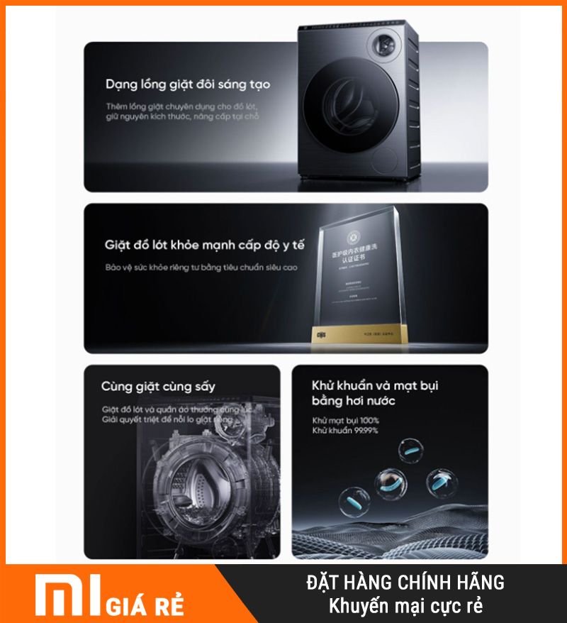 Máy giặt sấy Xiaomi Mijia MJ107 – giặt 10kg, sấy 7kg là dòng máy giặt sấy cao cấp và khác biệt đến từ Xiaomi, nổi bật với thiết kế 1 máy tích hợp 2 lồng giặt độc lập. Đây là giải pháp tối ưu cho người dùng hiện đại có nhu cầu giặt riêng đồ – đảm bảo vệ sinh – bảo vệ sức khỏe nhưng vẫn muốn tiết kiệm không gian lắp đặt.