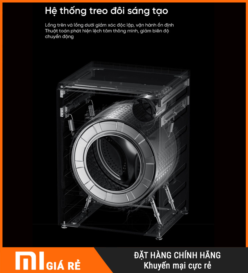Máy giặt sấy Xiaomi Mijia MJ107 được trang bị hệ thống treo đôi độc lập cho từng lồng giặt, giúp tối ưu khả năng vận hành khi hai lồng hoạt động cùng lúc: