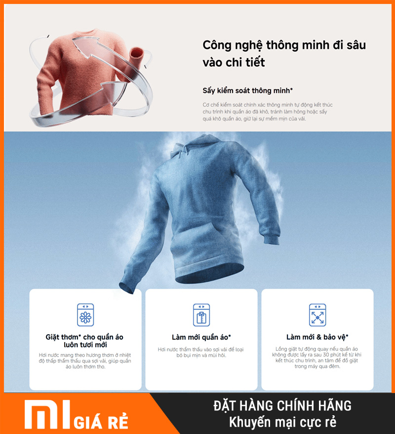 Máy giặt sấy Xiaomi Mijia WD105MJA10VN bản quốc tế – giặt 10.5kg sấy 7kg là lựa chọn toàn diện và đáng đầu tư cho gia đình hiện đại nhờ: