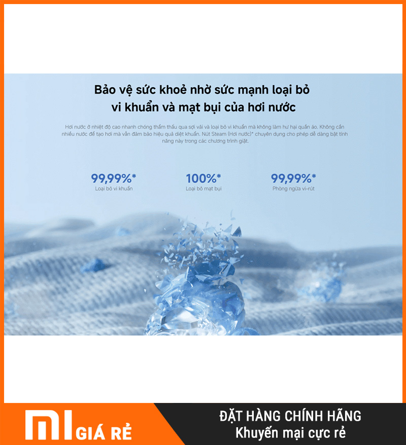 Diệt khuẩn lên đến 99.99%, loại bỏ vi khuẩn và mạt bụi bám sâu trong sợi vải