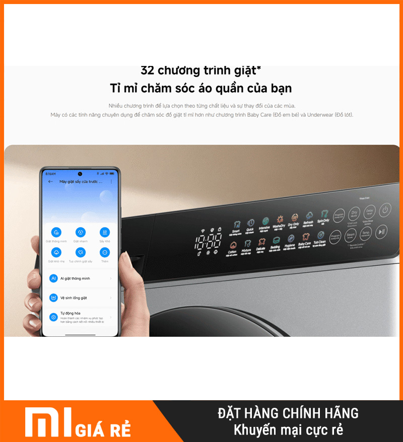 | Tiện ích nổi bật | Giặt thông minh bằng AI, giặt hơi nước, vệ sinh lồng giặt, gioăng cửa chống khuẩn |