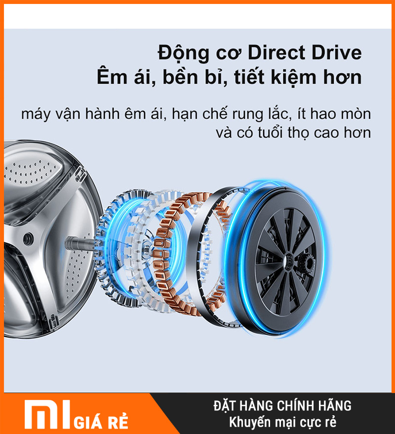Động cơ truyền động trực tiếp cho khả năng hoạt động êm ái, bền bỉ