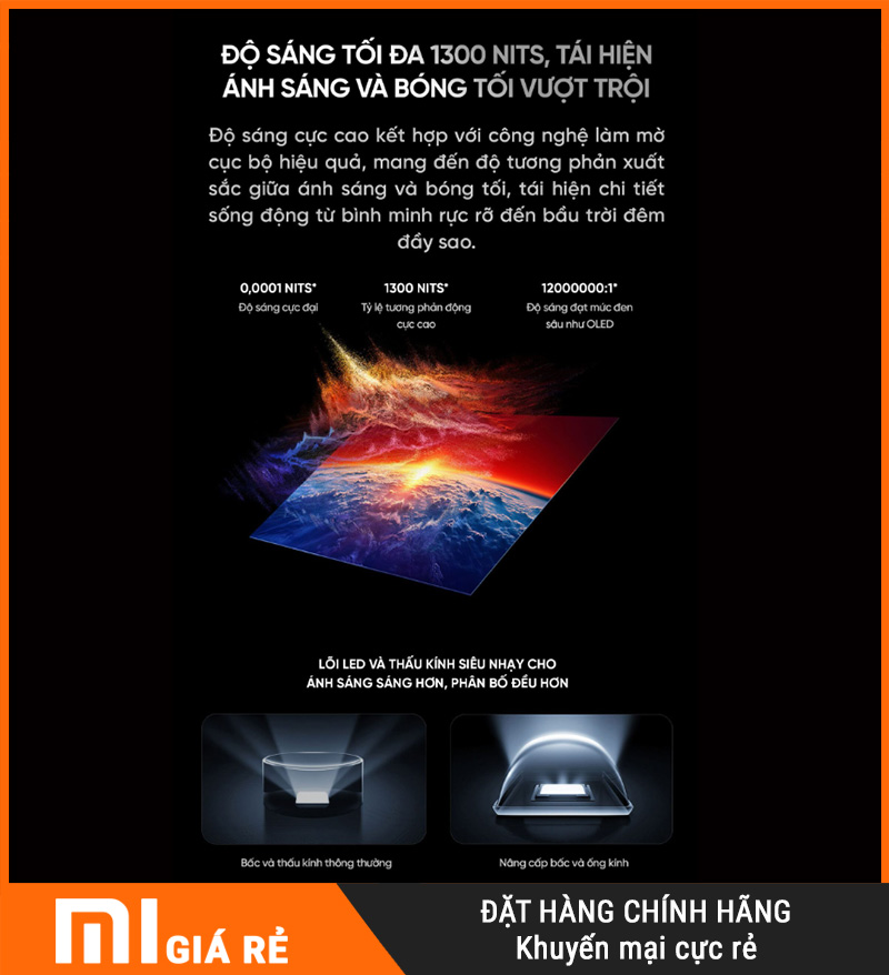 Hình ảnh đắt nhờ MiniLED đa vùng + 1300 nits HDR nổi khối