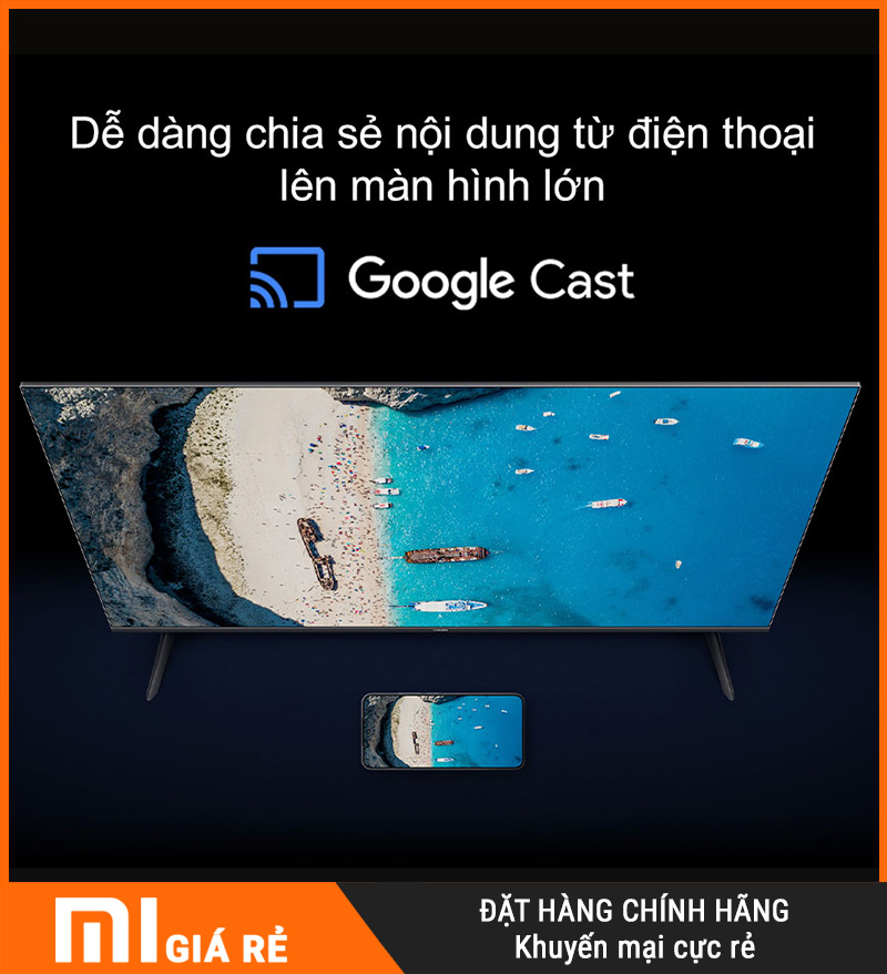 Với tính năng Chromecast built-in, Tivi Xiaomi A43 cho phép bạn truyền hình ảnh, video, nội dung từ điện thoại lên TV chỉ trong vài giây.