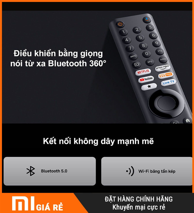 Điều khiển đi kèm Xiaomi A43 2026 sử dụng kết nối Bluetooth 360°, cho phép bạn thao tác dễ dàng ở mọi góc độ – không cần hướng trực tiếp vào TV như remote hồng ngoại thông thường.