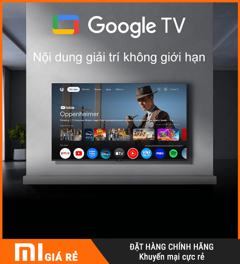 Xiaomi A55 2026 chạy trên nền tảng Google TV bản quốc tế, mang đến giao diện trực quan và khả năng giải trí mở rộng: