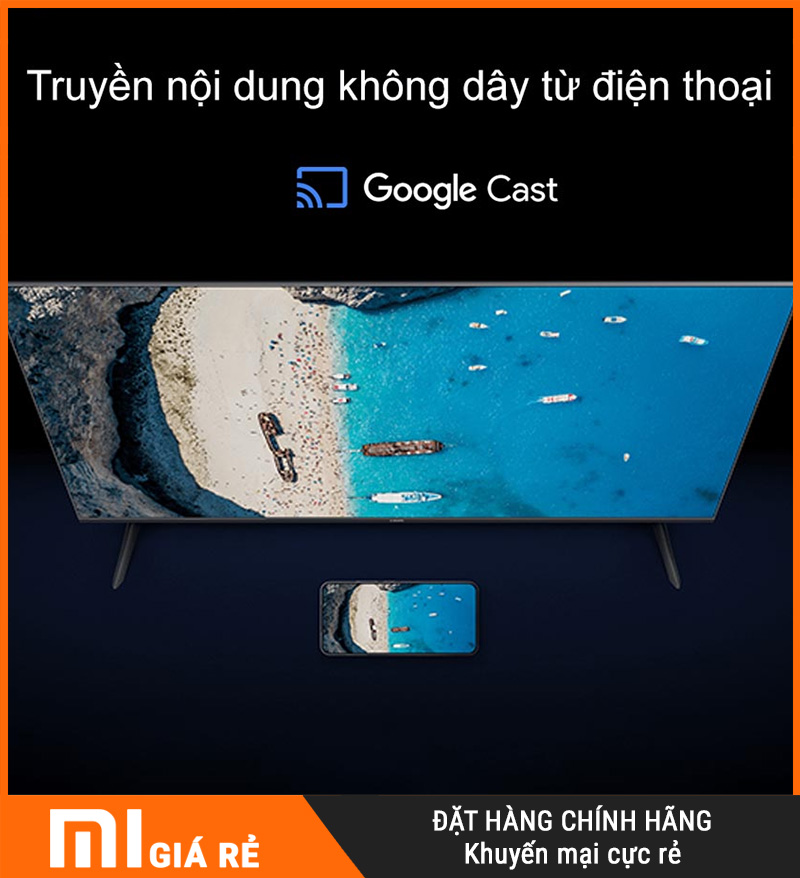 Tivi Xiaomi A55 2026 tích hợp sẵn Chromecast và Miracast, giúp chia sẻ nội dung từ điện thoại lên màn hình lớn chỉ với vài thao tác:
