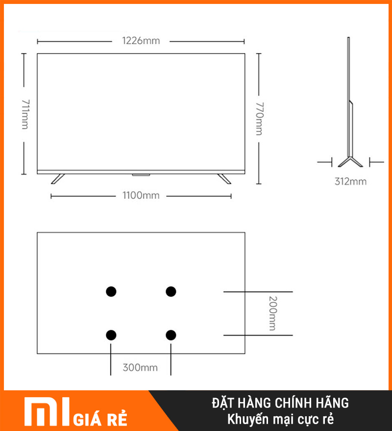 | Kích thước (có chân) | 1226 x 312 x 770 mm |