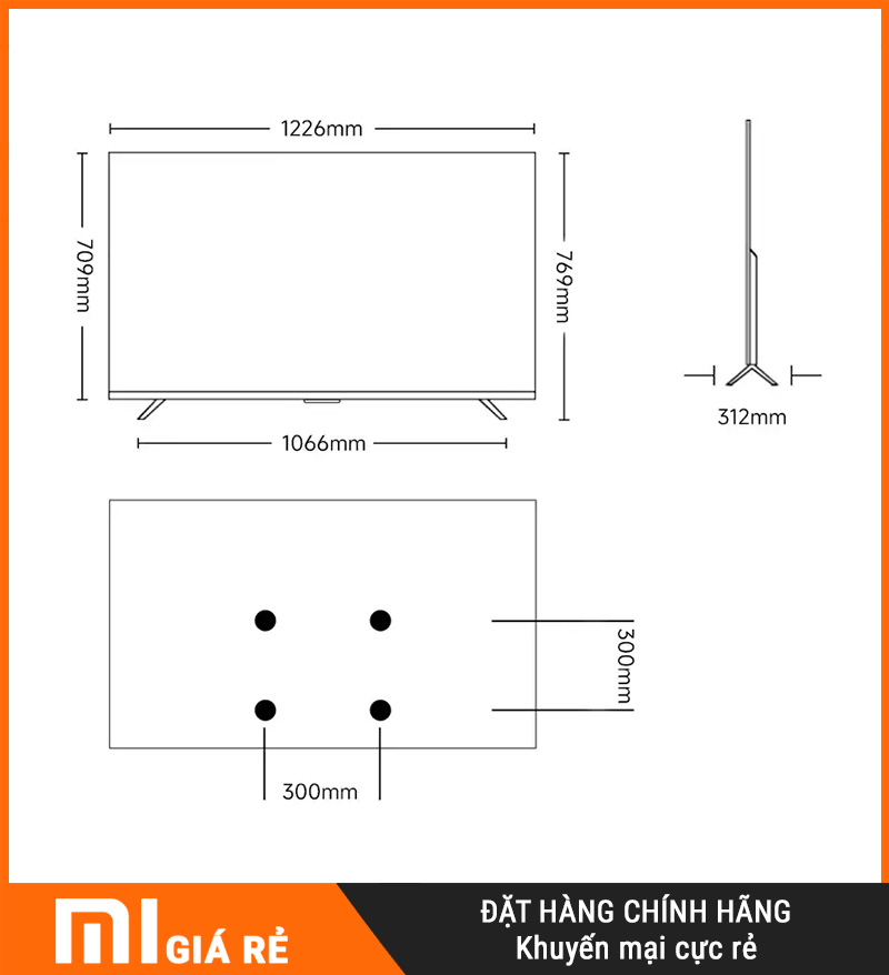| Kích thước không chân đế | 1226 x 77 x 709mm |