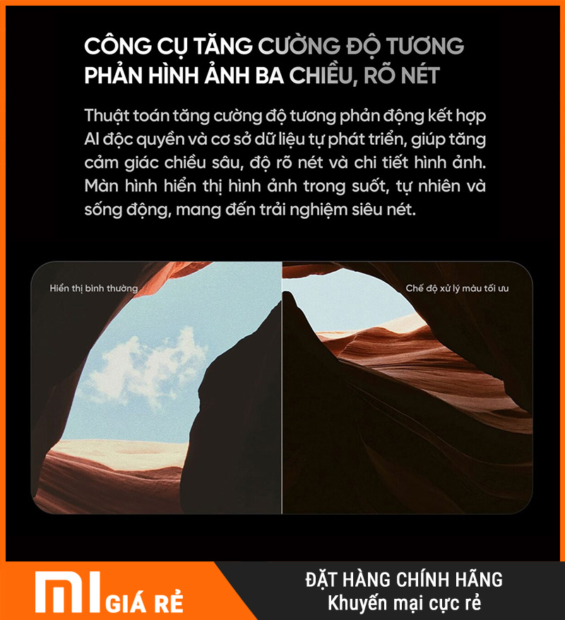Redmi X65 MiniLED 2026 được tối ưu bằng thuật toán tăng cường tương phản theo từng khung hình, tạo cảm giác hình ảnh nổi khối hơn (kiểu “3D” về mặt thị giác). TV sẽ phân tích vùng sáng – vùng tối và tăng độ tách lớp giữa các vật thể với nền, giúp cảnh quay trông thật và có chiều sâu hơn.
