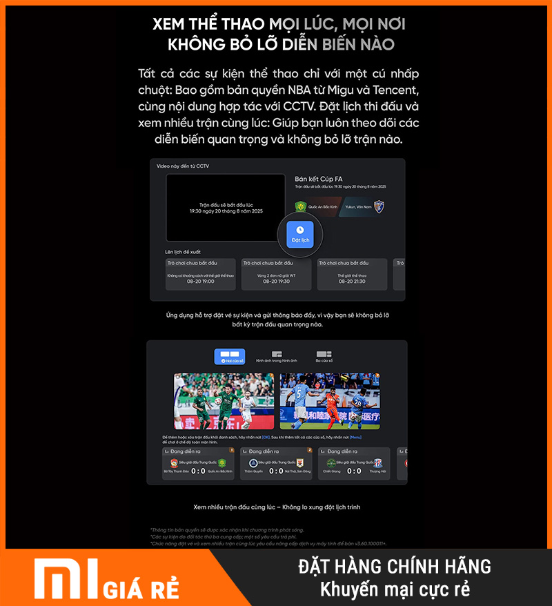 Với màn hình lớn và khả năng xử lý chuyển động tốt, Redmi X65 MiniLED 2026 đặc biệt hợp với người mê thể thao. Những pha bóng tốc độ cao, chuyển hướng liên tục hay cảnh quay toàn sân sẽ rõ hơn – mượt hơn – dễ theo dõi hơn.