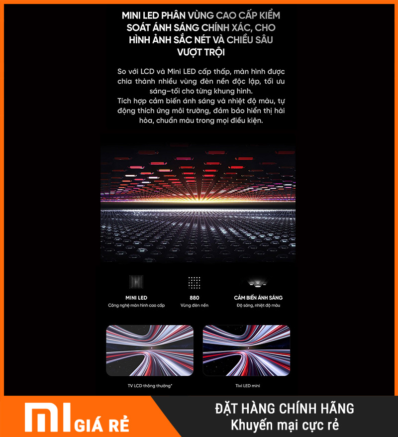 Nói đơn giản: MiniLED giúp TV “điều khiển ánh sáng thông minh”, nên hình vừa đậm, vừa sạch, vừa có lực.