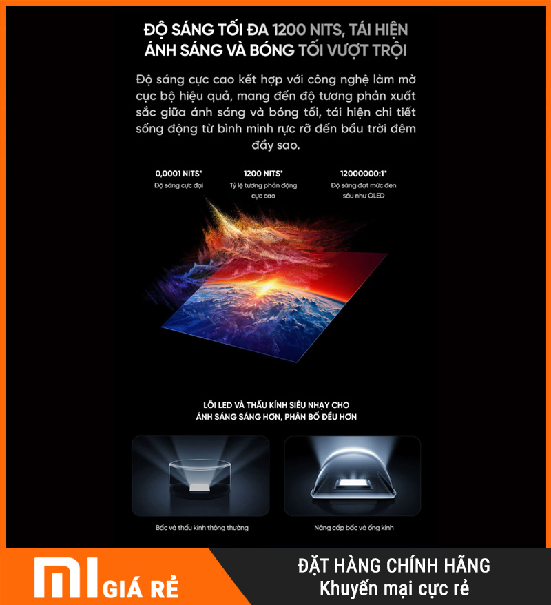 MiniLED phân vùng cao: đen sâu – giảm hở sáng rõ