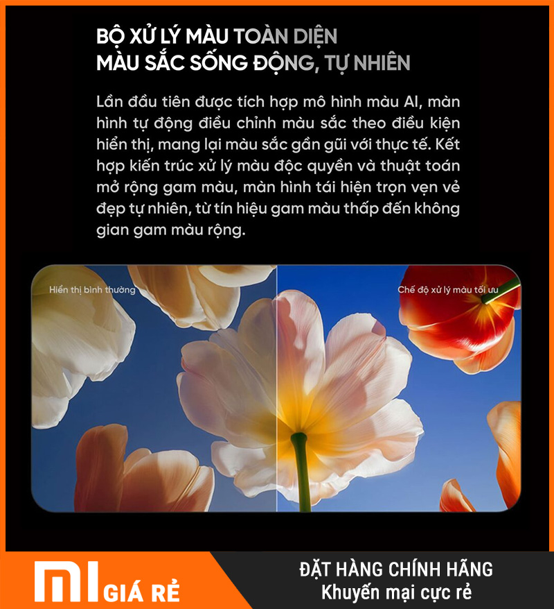 Hệ thống xử lý màu toàn diện giúp TV tái tạo màu theo hướng “rực vừa đủ, đúng tông, nhìn thật”. Thay vì đẩy màu quá tay cho sặc sỡ, TV tối ưu để màu có chiều sâu mà vẫn tự nhiên.