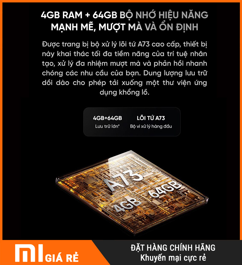 | Xử lý & Lưu trữ | CPU | Lõi tứ Cortex A73 |