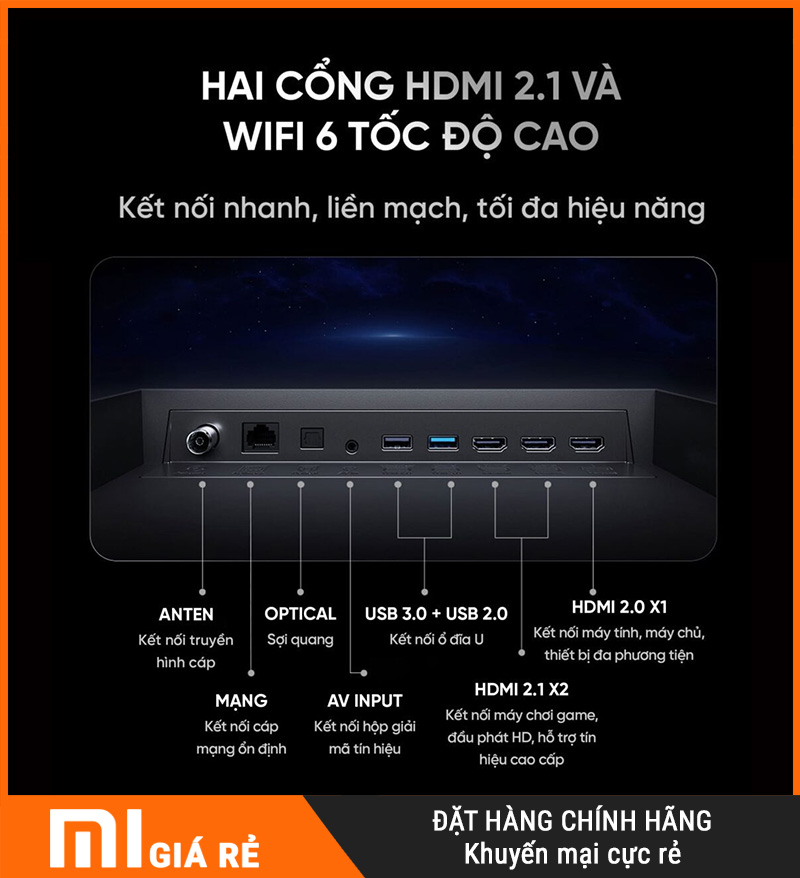 2 HDMI 2.1 + Wi-Fi 6 setup tiện, kết nối khỏe