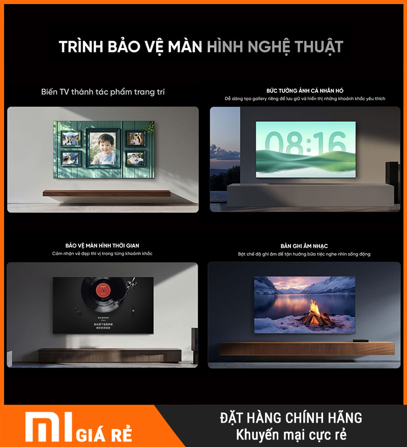 Art Screensaver giúp TV không chỉ là thiết bị giải trí mà còn là một phần nội thất. Khi không xem, màn hình hiển thị tranh/ảnh nghệ thuật hoặc ảnh gia đình, vừa đẹp không gian vừa “đỡ trống” phòng khách.