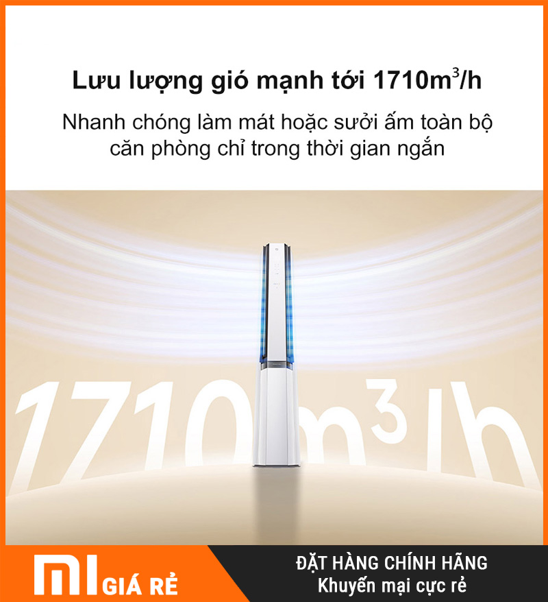 Với khả năng tạo ra lưu lượng gió mạnh mẽ lên đến 1710m³/h, điều hòa cây 2 chiều Xiaomi Mijia Pro KFR-72LW-NA11/M3A1 có thể nhanh chóng làm mát hoặc sưởi ấm toàn bộ căn phòng chỉ trong thời gian ngắn. Nhờ công suất lớn kết hợp với thiết kế luồng gió thông minh, thiết bị mang lại cảm giác dễ chịu gần như tức thì ngay sau khi khởi động. Đặc biệt, hệ thống điều chỉnh phân vùng khí thông minh giúp luồng gió được phân phối chính xác theo từng khu vực trong phòng, tối ưu hiệu quả hoạt động ngay cả trong các không gian có diện tích lớn hoặc không đồng đều. Đây chính là giải pháp lý tưởng cho những căn hộ có trần cao, phòng khách rộng hoặc môi trường công sở yêu cầu hiệu suất điều hòa cao.