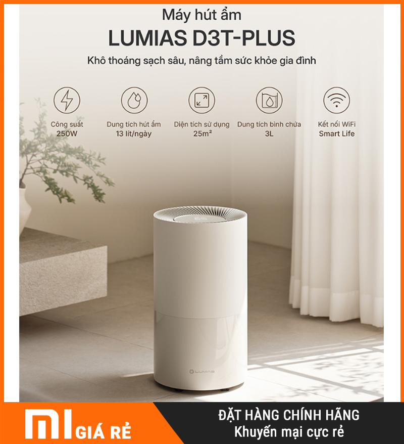 Nếu bạn đang cần một chiếc máy hút ẩm mạnh – êm – thông minh – tiện dùng lâu dài, thì Lumias D3T-PLUS là lựa chọn đáng cân nhắc. Sản phẩm nổi bật với hút ẩm tới 13L/ngày, gió 140m³/h, 3 chế độ Tự động/Ngủ/Sấy, kết nối Wi-Fi + Bluetooth điều khiển từ xa, cùng bình 3L + xả liên tục và loạt tính năng an toàn giúp sử dụng nhàn hơn, yên tâm hơn trong mọi mùa.