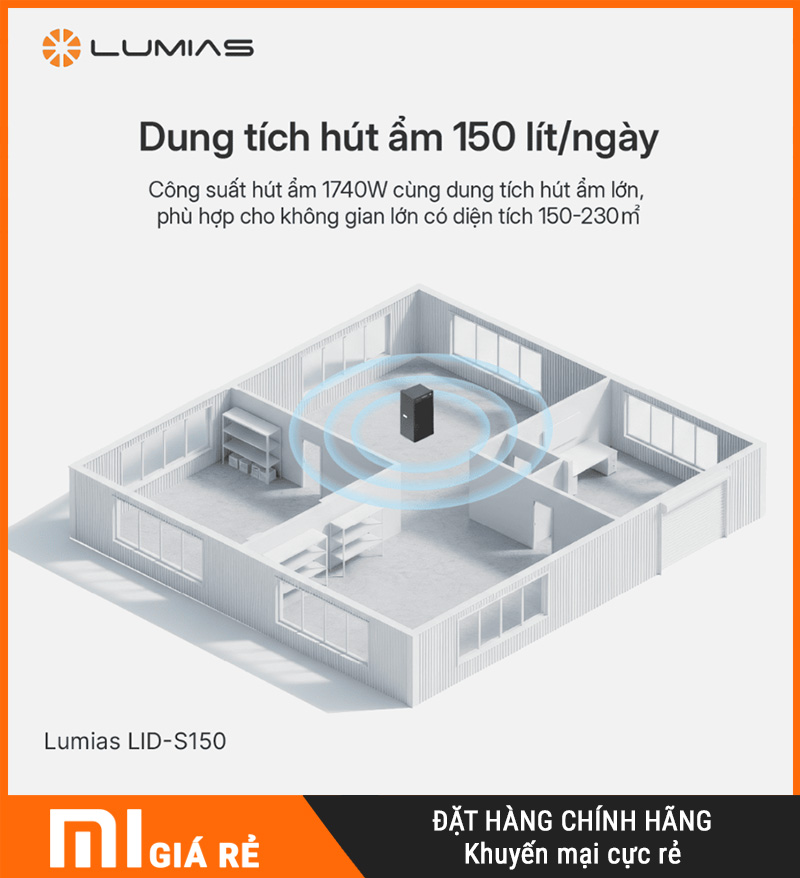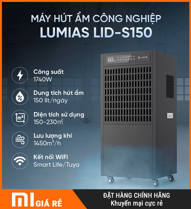 Nếu bạn cần một máy hút ẩm công nghiệp hút mạnh – chạy bền – dễ kiểm soát, dùng cho diện tích 150–230m², thì Lumias LID-S150 là lựa chọn phù hợp với công suất 1740W, máy nén Panasonic, dàn ống đồng, 2 phương án thoát nước, cùng WiFi điều khiển từ xa và cảm biến ẩm chính xác.