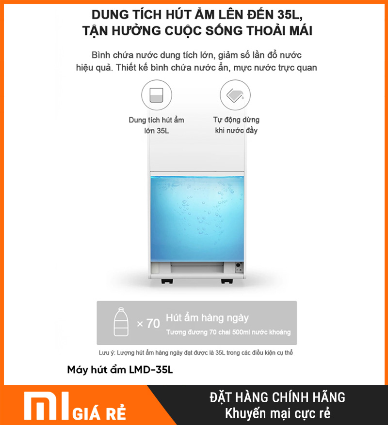 Công suất hút ẩm 35L/ngày hạn chế phải đổ nước thường xuyên