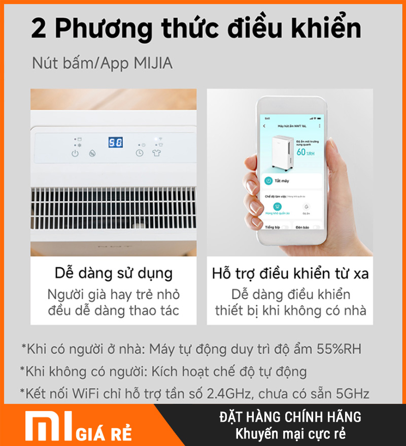 Bật/tắt mọi lúc: đi làm/ra ngoài vẫn xử lý ẩm kịp thời.