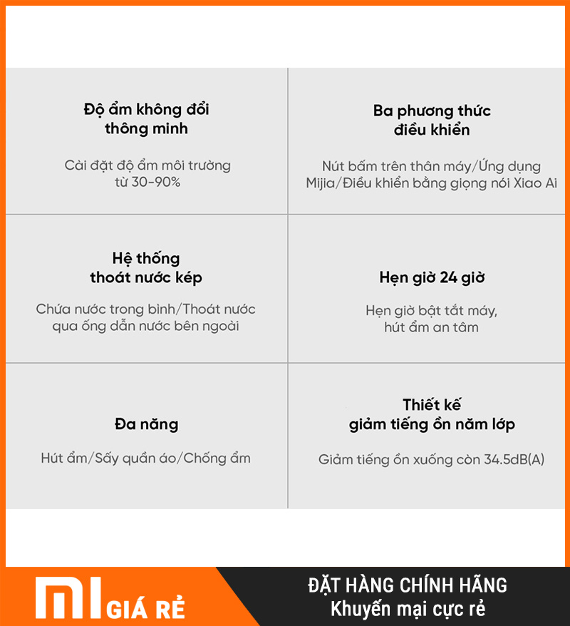 | Độ ồn khi hoạt động | 34.5 dB(A) (chế độ hút ẩm) |