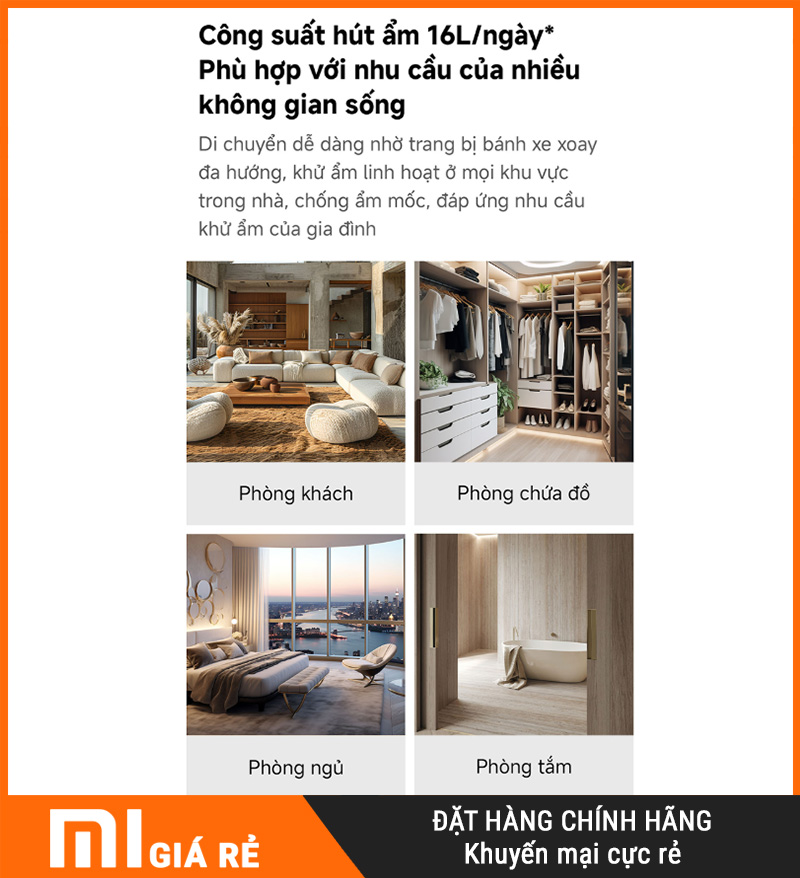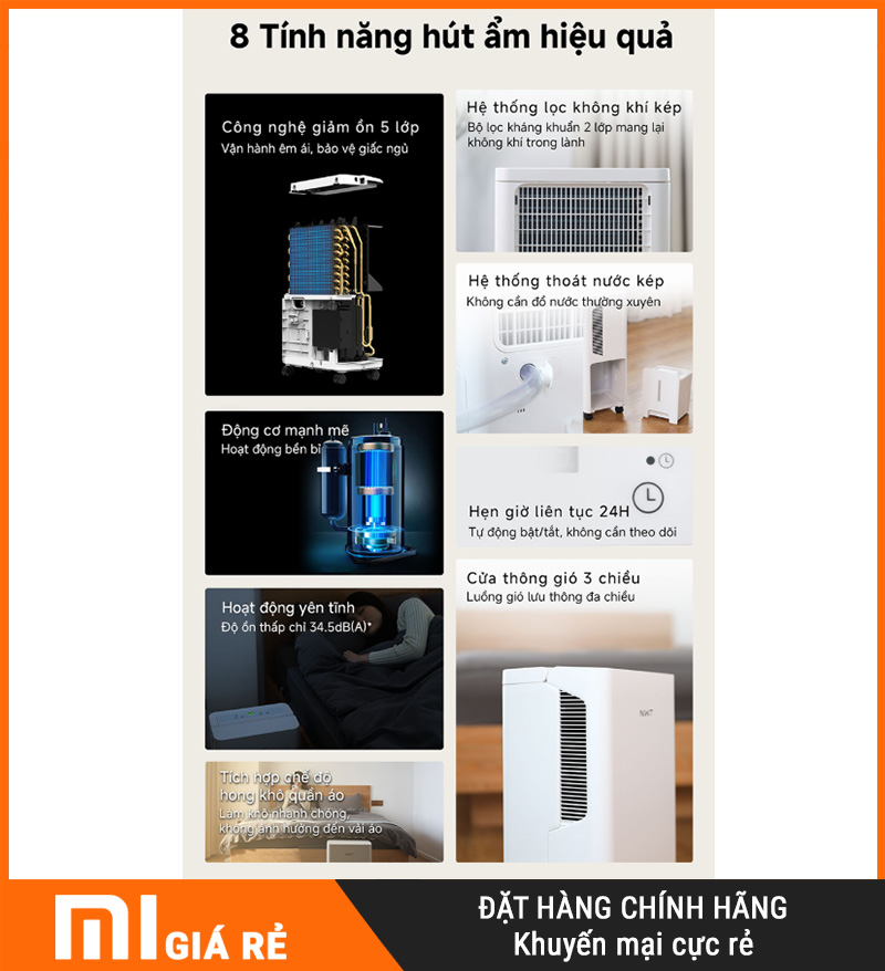 Nếu bạn cần một máy hút ẩm cho căn hộ/gia đình, ưu tiên hút mạnh 16L/ngày cho diện tích ≤ 35m², có hẹn giờ 24h, luồng khí 3D hỗ trợ hong khô quần áo, cảm biến nhạy, điều khiển Xiaomi Home, và đặc biệt siêu êm chỉ 34.5dB, thì NEW WIDETECH 16L (WDH33B16EW) là lựa chọn rất đáng chốt cho mùa nồm – mùa mưa ở Việt Nam.