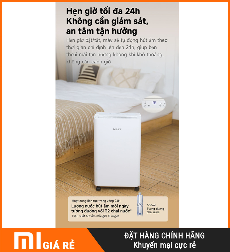 Tính năng hẹn giờ 24h giúp bạn kiểm soát độ ẩm theo đúng nhịp sinh hoạt, dùng “nhàn” hơn: