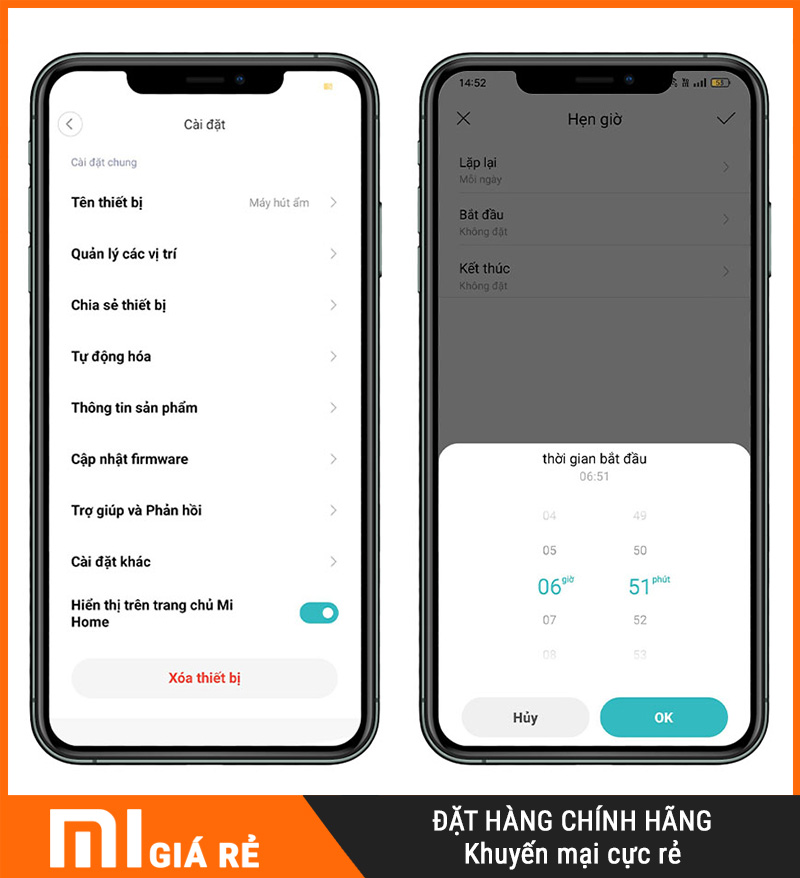 | Thời gian hẹn giờ | Lên đến 12 giờ (qua ứng dụng Mi Home) |