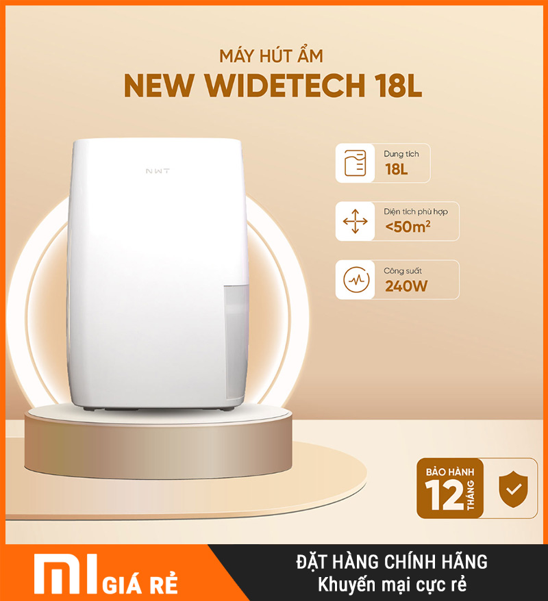 Máy hút ẩm không khí thông minh NEW WIDETECH 18L