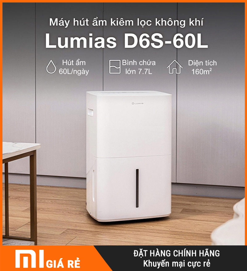 Máy hút ẩm kiêm lọc không khí Lumias D6S-60L – Khô thoáng cho diện tích ≤160m²