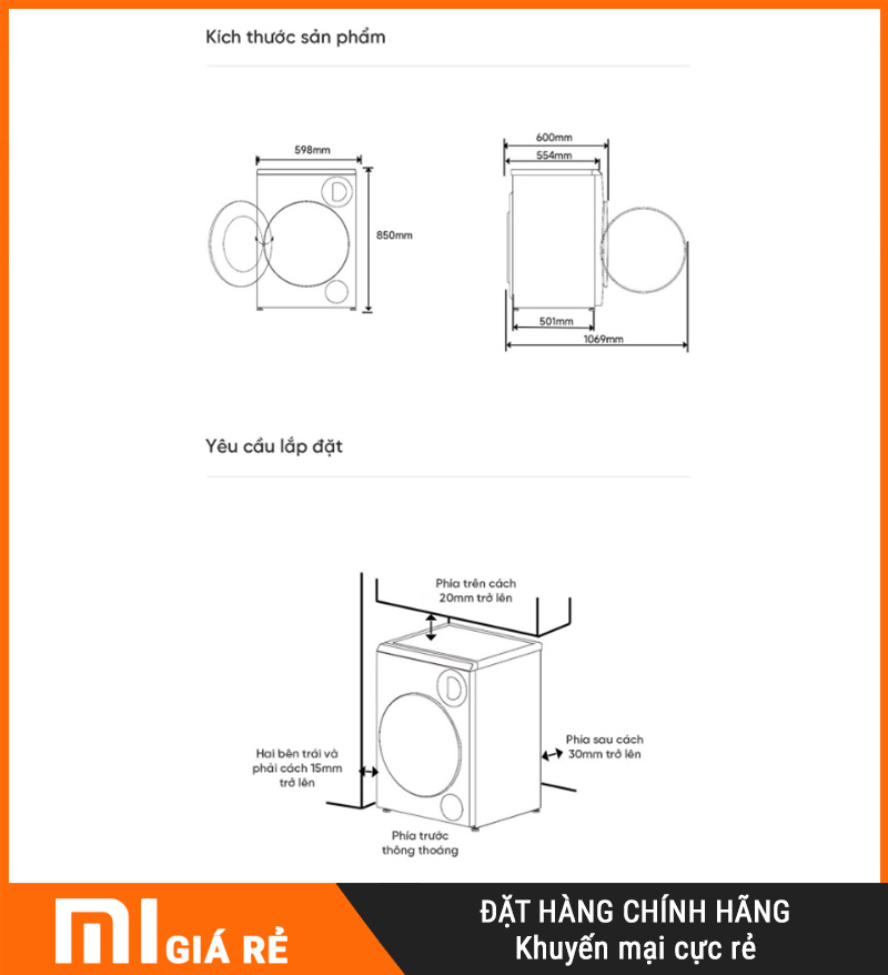 | Tên sản phẩm | Máy giặt sấy Xiaomi Mijia MJ107 |