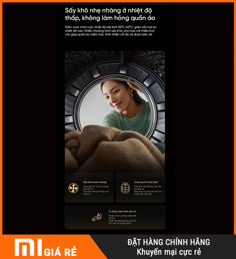 Sấy khô nhẹ nhàng ở nhiệt độ thấp – không làm hỏng quần áo