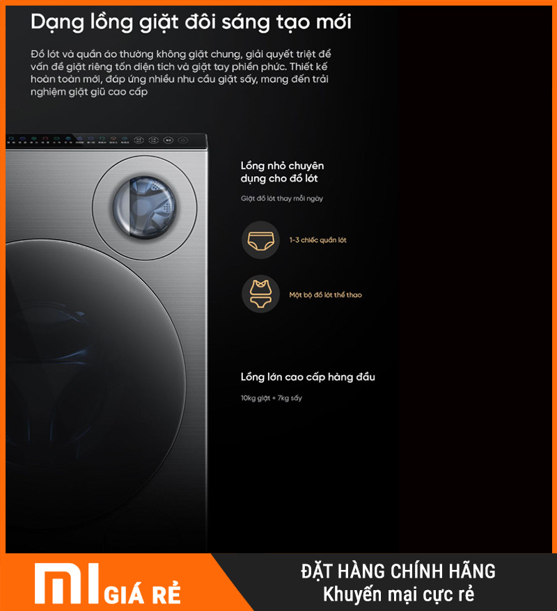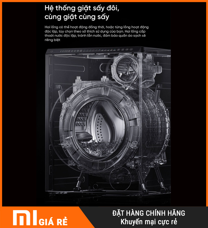 Máy giặt sấy Xiaomi Mijia MJ107 – giặt 10kg, sấy 7kg là dòng máy giặt sấy cao cấp và khác biệt đến từ Xiaomi, nổi bật với thiết kế 1 máy tích hợp 2 lồng giặt độc lập. Đây là giải pháp tối ưu cho người dùng hiện đại có nhu cầu giặt riêng đồ – đảm bảo vệ sinh – bảo vệ sức khỏe nhưng vẫn muốn tiết kiệm không gian lắp đặt.