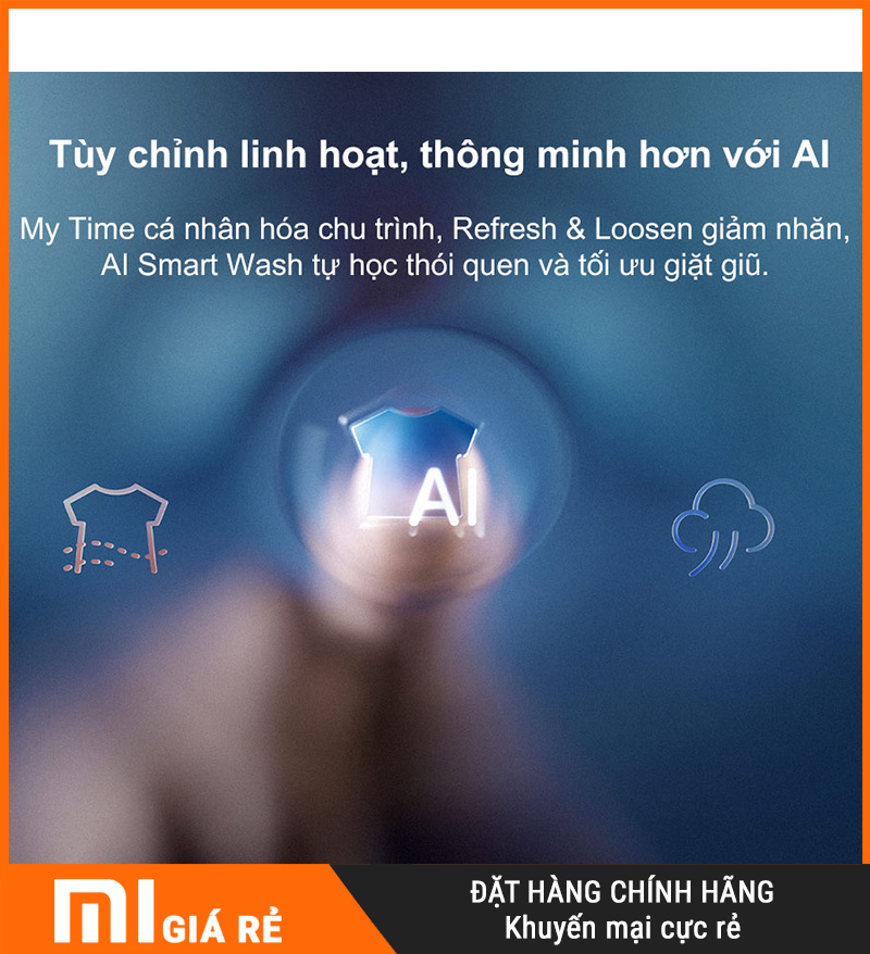 Máy cho phép tùy chỉnh chu trình theo nhu cầu (nhanh hơn, kỹ hơn, phù hợp loại vải…), đồng thời AI hỗ trợ tối ưu vận hành theo lượng đồ và chế độ bạn chọn (tùy chương trình). Nhờ vậy, bạn ít phải “chỉnh tay” mà vẫn đạt hiệu quả mong muốn.