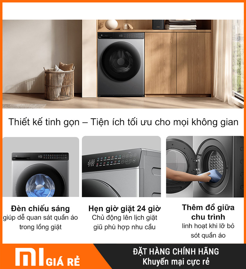 Nếu bạn muốn một chiếc máy giặt sấy 2 trong 1 để tối ưu diện tích và giảm phụ thuộc thời tiết, Xiaomi Mijia WD105MJA10VN (giặt 10.5kg – sấy 7kg) là lựa chọn đáng cân nhắc. Máy nổi bật nhờ lồng giặt lớn 525mm + cảm biến tải trọng, 32 chương trình, Hygiene hơi nước nhiệt độ cao, vận hành êm bền với động cơ truyền động trực tiếp, và trải nghiệm tiện lợi khi điều khiển qua Xiaomi Home.