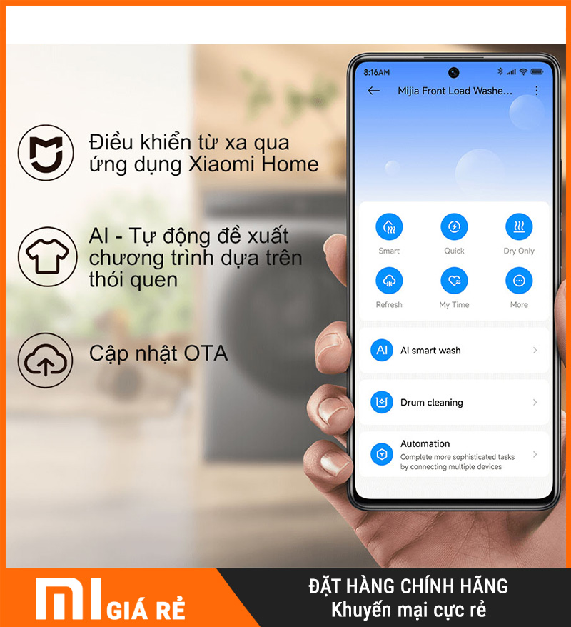 Kết nối Xiaomi Home giúp bạn điều khiển và theo dõi máy tiện hơn: