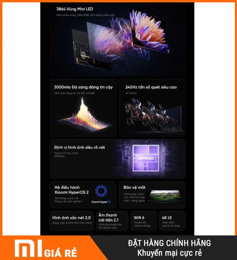Tivi Xiaomi S Pro Mini LED 100 inch 2025 là lựa chọn hoàn hảo cho những ai muốn biến phòng khách hoặc phòng giải trí thành một rạp phim thực thụ. Với công nghệ Mini LED tiên tiến, hình ảnh 4K sắc nét, tần số quét 144Hz mượt mà, âm thanh Dolby Atmos sống động cùng màn hình khổng lồ 100 inch, sản phẩm này không chỉ mang lại trải nghiệm giải trí đỉnh cao mà còn thể hiện đẳng cấp sang trọng của gia chủ.