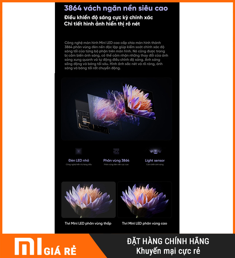 Chiếc TV này sử dụng hàng nghìn đèn nền Mini LED, được chia thành nhiều vùng kiểm soát độc lập, cho khả năng tinh chỉnh ánh sáng chính xác. Nhờ đó: