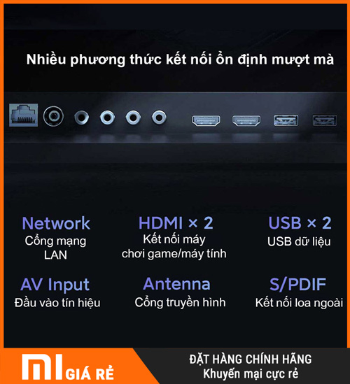 Tivi Xiaomi EA75 75 Inch là nguồn giải trí đa dạng và linh hoạt nhờ vào khả năng kết nối đa ứng dụng thông qua các cổng internet, HDMI, USB, AV, và Antenna.
